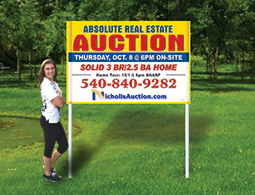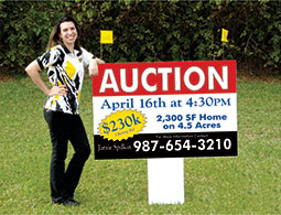 Bold, outdoor-ready auction signs with full customization and high-impact visibility.